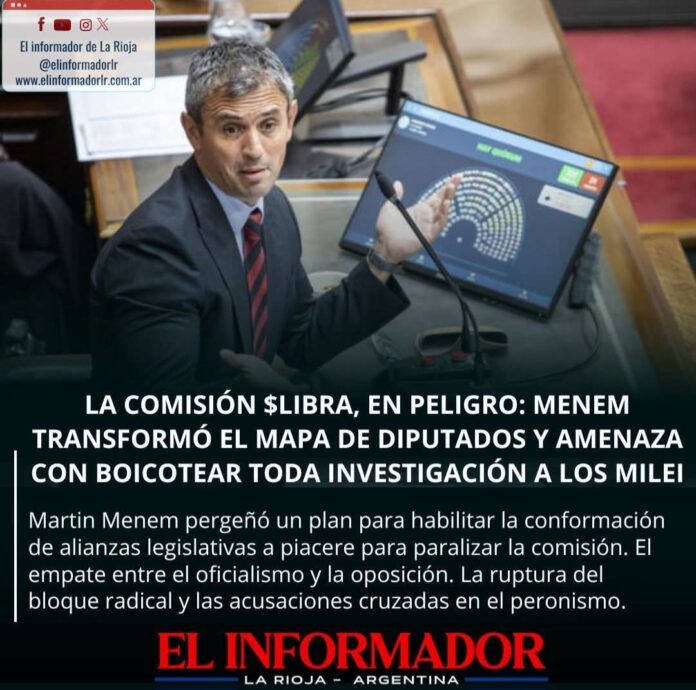 Inicio Destacadas La comisión $libra en peligro: Menem transformó el mapa de Diputados y...DestacadasLa comisión $libra en peligro: Menem transformó el mapa de Diputados y amenaza con boicotear toda investigación a los Milei abril 15, 2025FacebookTwitterPinterestVKWhatsApp Artículos relacionadosMás del autorYPF estabiliza el precio de la nafta por 45 días: No trasladará la suba del petróleoLa pobreza cayó en el segundo semestre y cerró el 2025 en 28,2%Franco Colapinto traerá la Formula 1 a las calles de Buenos Aires con un Road Show en PalermoDEJA UNA RESPUESTA Cancelar respuestaPor favor ingrese su comentario! Por favor ingrese su nombre aquí ¡Has introducido una dirección de correo electrónico incorrecta!Por favor ingrese su dirección de correo electrónico aquí Guardar mi nombre, correo electrónico y sitio web en este navegador la próxima vez que comente.