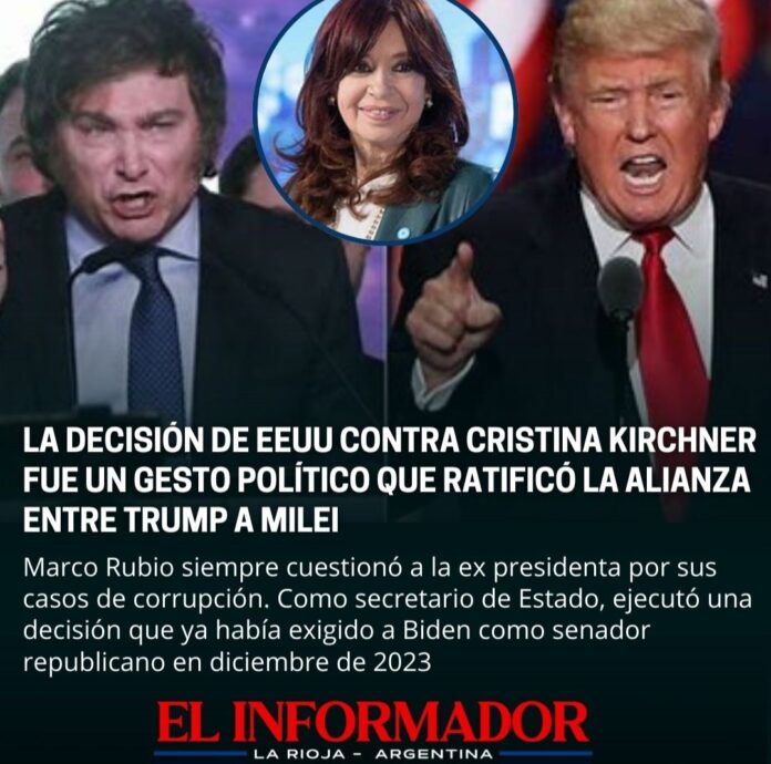 Inicio Destacadas La decisión de EE.UU. contra Cristina Kirchner fue un gesto político que...DestacadasLa decisión de EE.UU. contra Cristina Kirchner fue un gesto político que ratificó la alianza entre Trump y Milei marzo 22, 2025FacebookTwitterPinterestVKWhatsApp Artículos relacionadosMás del autorDetuvieron al hijastro del hombre de 88 años que fue encontrado sin vida en su casaYPF estabiliza el precio de la nafta por 45 días: No trasladará la suba del petróleoLa pobreza cayó en el segundo semestre y cerró el 2025 en 28,2%DEJA UNA RESPUESTA Cancelar respuestaPor favor ingrese su comentario! Por favor ingrese su nombre aquí ¡Has introducido una dirección de correo electrónico incorrecta!Por favor ingrese su dirección de correo electrónico aquí Guardar mi nombre, correo electrónico y sitio web en este navegador la próxima vez que comente.