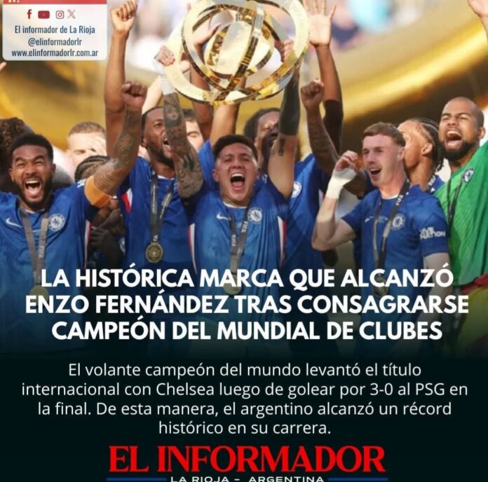 Inicio Deportes La histórica marca que alcanzó Enzo Fernández tras consagrarse campeón del Mundial...DeportesLa histórica marca que alcanzó Enzo Fernández tras consagrarse campeón del Mundial de Clubes julio 14, 2025FacebookTwitterPinterestVKWhatsApp Artículos relacionadosMás del autorFranco Colapinto traerá la Formula 1 a las calles de Buenos Aires con un Road Show en PalermoPresentaron competencias de trail running que impulsan el turismo y el desarrollo regionalRiver deja de participar en las reuniones de comité ejecutivo de AFADEJA UNA RESPUESTA Cancelar respuestaPor favor ingrese su comentario! Por favor ingrese su nombre aquí ¡Has introducido una dirección de correo electrónico incorrecta!Por favor ingrese su dirección de correo electrónico aquí Guardar mi nombre, correo electrónico y sitio web en este navegador la próxima vez que comente.
