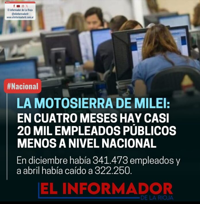 Inicio Destacadas LA MOTOSIERRA DE MILEI: EN CUATRO MESES HAY CASI 20 MIL EMPLEADOS...DestacadasLA MOTOSIERRA DE MILEI: EN CUATRO MESES HAY CASI 20 MIL EMPLEADOS PÚBLICOS MENOS A NIVEL NACIONAL mayo 31, 2024FacebookTwitterPinterestVKWhatsApp Artículos relacionadosMás del autorDos millones de personas desocupadas o trabajando en negro en ArgentinaDiputados pidieron interpelar a Karina Milei y a Adorni y exigen respuestas de Javier MileiWado de Pedro: «El Gobernador Quintela pelea todos los días para defender a su pueblo y los recursos que le corresponden»DEJA UNA RESPUESTA Cancelar respuestaPor favor ingrese su comentario! Por favor ingrese su nombre aquí ¡Has introducido una dirección de correo electrónico incorrecta!Por favor ingrese su dirección de correo electrónico aquí Guardar mi nombre, correo electrónico y sitio web en este navegador la próxima vez que comente.