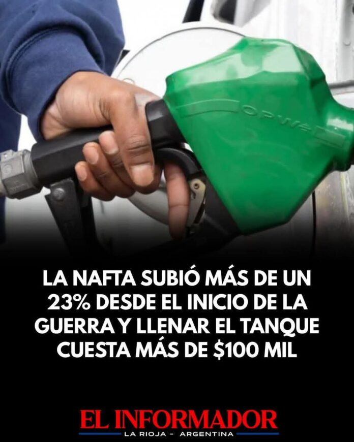 Inicio Destacadas La nafta subió más de un 23% desde el inicio de la...DestacadasEconomíaLa nafta subió más de un 23% desde el inicio de la guerra y llenar el tanque cuesta más de $100 mil abril 14, 2026FacebookTwitterPinterestVKWhatsApp Artículos relacionadosMás del autorMartín Menem ratificó que Manuel Adorni dará su informe en Diputados: «Compren pochoclos, va a ser picante»Según el INDEC: Casi la mitad de los argentinos trabaja en la informalidad$2.342.861 es lo que una familia de dos adultos y dos menores necesitó en marzo para ser considerada de clase mediaDEJA UNA RESPUESTA Cancelar respuestaPor favor ingrese su comentario! Por favor ingrese su nombre aquí ¡Has introducido una dirección de correo electrónico incorrecta!Por favor ingrese su dirección de correo electrónico aquí Guardar mi nombre, correo electrónico y sitio web en este navegador la próxima vez que comente.