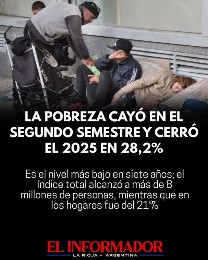 Inicio Destacadas La pobreza cayó en el segundo semestre y cerró el 2025 en...DestacadasLa pobreza cayó en el segundo semestre y cerró el 2025 en 28,2% abril 1, 2026FacebookTwitterPinterestVKWhatsApp Artículos relacionadosMás del autorFranco Colapinto traerá la Formula 1 a las calles de Buenos Aires con un Road Show en PalermoAfirman que Adorni compró el departamento de Caballito en U$S230 mil dólares con un préstamo de dos jubiladasHallan el cuerpo sin vida del jóven que cayó al dique de OltaDEJA UNA RESPUESTA Cancelar respuestaPor favor ingrese su comentario! Por favor ingrese su nombre aquí ¡Has introducido una dirección de correo electrónico incorrecta!Por favor ingrese su dirección de correo electrónico aquí Guardar mi nombre, correo electrónico y sitio web en este navegador la próxima vez que comente.