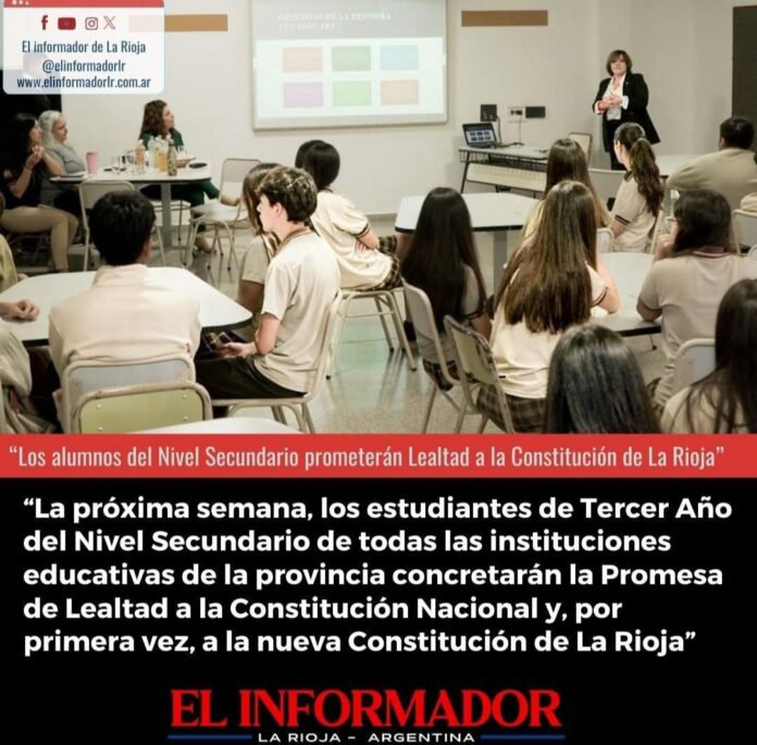 Inicio Local La próxima semana, los estudiantes del tercer año del nivel secundario de...LocalLa próxima semana, los estudiantes del tercer año del nivel secundario de todas las instituciones educativas de la provincia concretarán la promesa de Laeltad a la Constitución Nacional, y por primera vez, a la nueva Constitución de La Rioja abril 29, 2025FacebookTwitterPinterestVKWhatsApp Artículos relacionadosMás del autorEncontraron a un hombre de 86 años que llevaba meses muerto en su domicilio en Barrio FerroviarioLa Rioja homenajeó a los veteranos de Malvinas con el tradicional desfile del 2 de abrilEl COE inicia el operativo de Semana Santa en el Señor de la PeñaDEJA UNA RESPUESTA Cancelar respuestaPor favor ingrese su comentario! Por favor ingrese su nombre aquí ¡Has introducido una dirección de correo electrónico incorrecta!Por favor ingrese su dirección de correo electrónico aquí Guardar mi nombre, correo electrónico y sitio web en este navegador la próxima vez que comente.