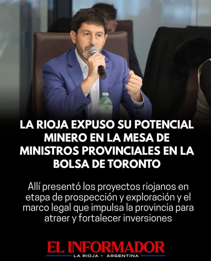 Inicio Local La Rioja expuso su potencial minero en la mesa de Ministros provinciales...LocalLa Rioja expuso su potencial minero en la mesa de Ministros provinciales en la bolsa de Toronto marzo 4, 2026FacebookTwitterPinterestVKWhatsApp Artículos relacionadosMás del autorGobierno articula con la Liga Riojana de fútbol un plan de apoyo para clubes y torneosLa Rioja consolida inversión en el proyecto Peñas Negras tras reunión con inversor en CanadáAvanza una obra clave para mejorar la presión de agua en un sector de TalamuyunaDEJA UNA RESPUESTA Cancelar respuestaPor favor ingrese su comentario! Por favor ingrese su nombre aquí ¡Has introducido una dirección de correo electrónico incorrecta!Por favor ingrese su dirección de correo electrónico aquí Guardar mi nombre, correo electrónico y sitio web en este navegador la próxima vez que comente.