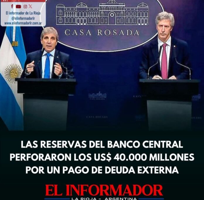 Inicio Destacadas Las reservas del Banco Central perforaron los US$40.000 millones por un pago...DestacadasLas reservas del Banco Central perforaron los US$40.000 millones por un pago de deuda extra julio 9, 2025FacebookTwitterPinterestVKWhatsApp Artículos relacionadosMás del autorDetuvieron al hijastro del hombre de 88 años que fue encontrado sin vida en su casaYPF estabiliza el precio de la nafta por 45 días: No trasladará la suba del petróleoLa pobreza cayó en el segundo semestre y cerró el 2025 en 28,2%DEJA UNA RESPUESTA Cancelar respuestaPor favor ingrese su comentario! Por favor ingrese su nombre aquí ¡Has introducido una dirección de correo electrónico incorrecta!Por favor ingrese su dirección de correo electrónico aquí Guardar mi nombre, correo electrónico y sitio web en este navegador la próxima vez que comente.