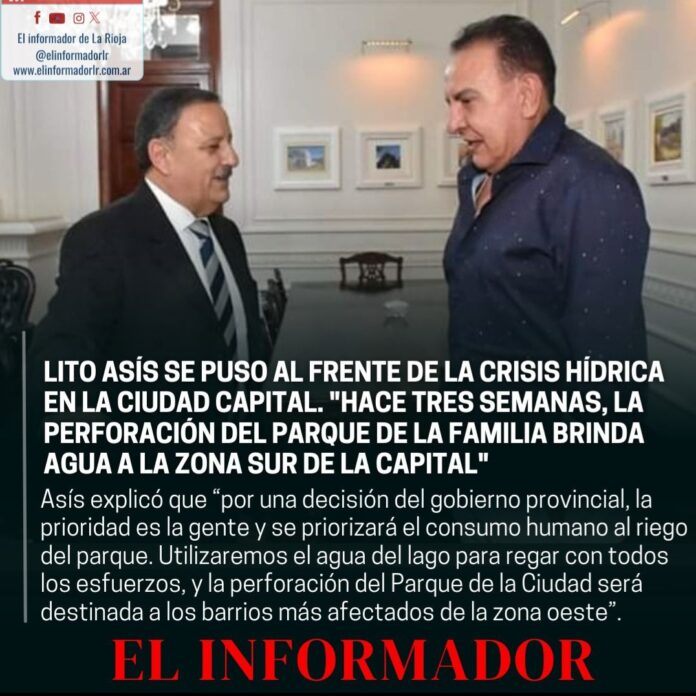 Inicio Local Lito Asis se puso al frente de la crisis hídrica en la...LocalLito Asis se puso al frente de la crisis hídrica en la ciudad capital: «hace tres semanas, la perforacion del Parque de la Familia brinda agua a la zona sur de la ciudad» diciembre 19, 2024FacebookTwitterPinterestVKWhatsApp Artículos relacionadosMás del autorEncontraron a un hombre de 86 años que llevaba meses muerto en su domicilio en Barrio FerroviarioLa Rioja homenajeó a los veteranos de Malvinas con el tradicional desfile del 2 de abrilEl COE inicia el operativo de Semana Santa en el Señor de la PeñaDEJA UNA RESPUESTA Cancelar respuestaPor favor ingrese su comentario! Por favor ingrese su nombre aquí ¡Has introducido una dirección de correo electrónico incorrecta!Por favor ingrese su dirección de correo electrónico aquí Guardar mi nombre, correo electrónico y sitio web en este navegador la próxima vez que comente.
