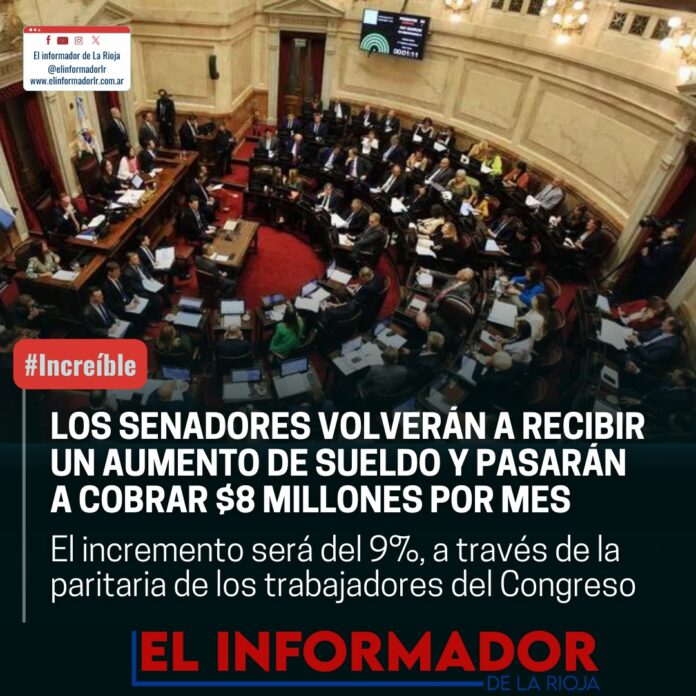 Inicio Destacadas LOS SENADORES VOLVERÁN A RECIBIR UN AUMENTO DE SUELDO Y PASARÁN A...DestacadasLOS SENADORES VOLVERÁN A RECIBIR UN AUMENTO DE SUELDO Y PASARÁN A COBRAR $8 MILLONES POR MES mayo 29, 2024FacebookTwitterPinterestVKWhatsApp Artículos relacionadosMás del autorFranco Colapinto traerá la Formula 1 a las calles de Buenos Aires con un Road Show en PalermoAfirman que Adorni compró el departamento de Caballito en U$S230 mil dólares con un préstamo de dos jubiladasHallan el cuerpo sin vida del jóven que cayó al dique de OltaDEJA UNA RESPUESTA Cancelar respuestaPor favor ingrese su comentario! Por favor ingrese su nombre aquí ¡Has introducido una dirección de correo electrónico incorrecta!Por favor ingrese su dirección de correo electrónico aquí Guardar mi nombre, correo electrónico y sitio web en este navegador la próxima vez que comente.