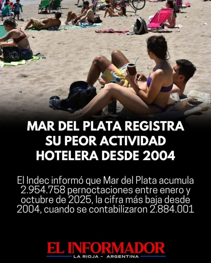 Inicio Nacional Mar del Plata registra su peor actividad hotelera desde 2004NacionalMar del Plata registra su peor actividad hotelera desde 2004 enero 12, 2026FacebookTwitterPinterestVKWhatsApp Artículos relacionadosMás del autorLa Rioja presentó su producción editorial en Buenos Aires y anunció una nueva feria del libro con eje en memoria y resistenciaLa actividad económica no repunta: En febrero cayó un 2,6% mensual y tuvo su peor caída desde diciembre de 2023Ricardo Quintela: «Mantengamos viva su memoria, teniendo sus enseñanzas como bandera y sus actos como ejemplo»DEJA UNA RESPUESTA Cancelar respuestaPor favor ingrese su comentario! Por favor ingrese su nombre aquí ¡Has introducido una dirección de correo electrónico incorrecta!Por favor ingrese su dirección de correo electrónico aquí Guardar mi nombre, correo electrónico y sitio web en este navegador la próxima vez que comente.