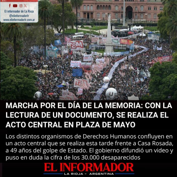 Inicio Sociedad Marcha por el día de la Memoria: con la lectura de un...SociedadMarcha por el día de la Memoria: con la lectura de un documento, se realiza el acto central en plaza de mayo marzo 25, 2025FacebookTwitterPinterestVKWhatsApp Artículos relacionadosMás del autorLa imágen más triste: Una jubilada comiendo de la basuraLa Perla: Identificaron en Córdoba los restos de 12 víctimas de la última dictadura militarEl precio de la carne subió un 70% en los últimos 5 mesesDEJA UNA RESPUESTA Cancelar respuestaPor favor ingrese su comentario! Por favor ingrese su nombre aquí ¡Has introducido una dirección de correo electrónico incorrecta!Por favor ingrese su dirección de correo electrónico aquí Guardar mi nombre, correo electrónico y sitio web en este navegador la próxima vez que comente.