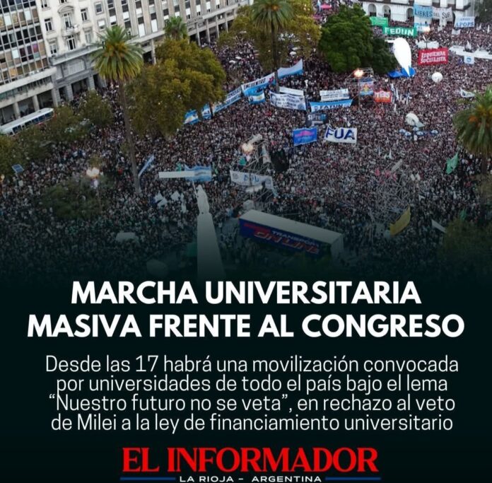 Inicio Nacional Marcha universitaria masiva frente al CongresoNacionalMarcha universitaria masiva frente al Congreso septiembre 17, 2025FacebookTwitterPinterestVKWhatsApp Artículos relacionadosMás del autorATE anunció un paro nacional para el 21 de abril en reclamo de aumento salarialTere Madera sobre Milei: «No puede haber respeto quien gobierna con odio e intolerancia»Una multitud participó de la vigilia en honor a los Héroes de MalvinasDEJA UNA RESPUESTA Cancelar respuestaPor favor ingrese su comentario! Por favor ingrese su nombre aquí ¡Has introducido una dirección de correo electrónico incorrecta!Por favor ingrese su dirección de correo electrónico aquí Guardar mi nombre, correo electrónico y sitio web en este navegador la próxima vez que comente.