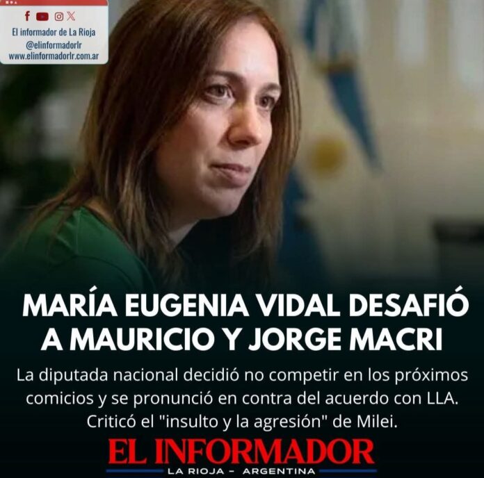 Inicio Destacadas María Eugenia Vidal desafió a Mauricio y jorge MacriDestacadasMaría Eugenia Vidal desafió a Mauricio y jorge Macri agosto 11, 2025FacebookTwitterPinterestVKWhatsApp Artículos relacionadosMás del autorLa Rioja solicitó $85.000 millones de adelanto de Coparticipación a la NaciónEl Gobierno Nacional otorgará un anticipo financiero de hasta de $400.000 millones a La RiojaDetuvieron al hijastro del hombre de 88 años que fue encontrado sin vida en su casaDEJA UNA RESPUESTA Cancelar respuestaPor favor ingrese su comentario! Por favor ingrese su nombre aquí ¡Has introducido una dirección de correo electrónico incorrecta!Por favor ingrese su dirección de correo electrónico aquí Guardar mi nombre, correo electrónico y sitio web en este navegador la próxima vez que comente.