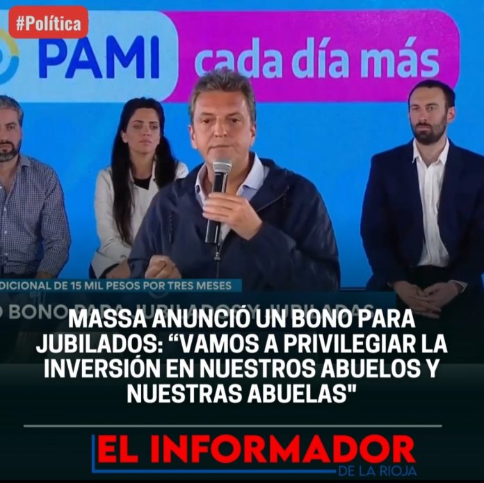 Inicio Nacional MASSA ANUNCIÓ UN BONO PARA JUBILADOS: «VAMOS A PRIVILEGIAR LA INVERSIÓN EN...NacionalMASSA ANUNCIÓ UN BONO PARA JUBILADOS: «VAMOS A PRIVILEGIAR LA INVERSIÓN EN NUESTROS ABUELOS Y NUESTRAS ABUELAS» septiembre 18, 2023FacebookTwitterPinterestVKWhatsApp Artículos relacionadosMás del autorTercera semana de paro universitario por recomposición salarialEl índice de confianza en el Gobierno cayó por cuarto mes consecutivoLa Serenisima tiene nuevos dueños, tras casi un siglo en manos de sus fundadoresDEJA UNA RESPUESTA Cancelar respuestaPor favor ingrese su comentario! Por favor ingrese su nombre aquí ¡Has introducido una dirección de correo electrónico incorrecta!Por favor ingrese su dirección de correo electrónico aquí Guardar mi nombre, correo electrónico y sitio web en este navegador la próxima vez que comente.
