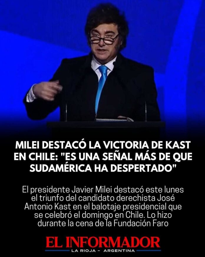 Inicio Destacadas Milei destacó la victoria de Kast en Chile: «Es una señal más...DestacadasMilei destacó la victoria de Kast en Chile: «Es una señal más de que Sudamérica ha despertado» diciembre 17, 2025FacebookTwitterPinterestVKWhatsApp Artículos relacionadosMás del autorDiputados pidieron interpelar a Karina Milei y a Adorni y exigen respuestas de Javier MileiWado de Pedro: «El Gobernador Quintela pelea todos los días para defender a su pueblo y los recursos que le corresponden»Advierten por despidos masivos en el servicio metereológico: «Es un peligro para la seguridad de la población»DEJA UNA RESPUESTA Cancelar respuestaPor favor ingrese su comentario! Por favor ingrese su nombre aquí ¡Has introducido una dirección de correo electrónico incorrecta!Por favor ingrese su dirección de correo electrónico aquí Guardar mi nombre, correo electrónico y sitio web en este navegador la próxima vez que comente.