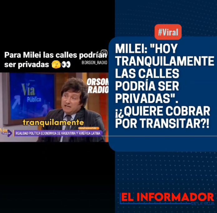 Inicio Destacadas MILEI: «HOY TRANQUILAMENTE LAS CALLES PODRIAN SER PRIVADAS».¡¿QUIERE COBRAR POR TRANSITAR?!DestacadasMILEI: «HOY TRANQUILAMENTE LAS CALLES PODRIAN SER PRIVADAS».¡¿QUIERE COBRAR POR TRANSITAR?! octubre 9, 2023FacebookTwitterPinterestVKWhatsApp Artículos relacionadosMás del autorYPF estabiliza el precio de la nafta por 45 días: No trasladará la suba del petróleoLa pobreza cayó en el segundo semestre y cerró el 2025 en 28,2%Franco Colapinto traerá la Formula 1 a las calles de Buenos Aires con un Road Show en PalermoDEJA UNA RESPUESTA Cancelar respuestaPor favor ingrese su comentario! Por favor ingrese su nombre aquí ¡Has introducido una dirección de correo electrónico incorrecta!Por favor ingrese su dirección de correo electrónico aquí Guardar mi nombre, correo electrónico y sitio web en este navegador la próxima vez que comente.