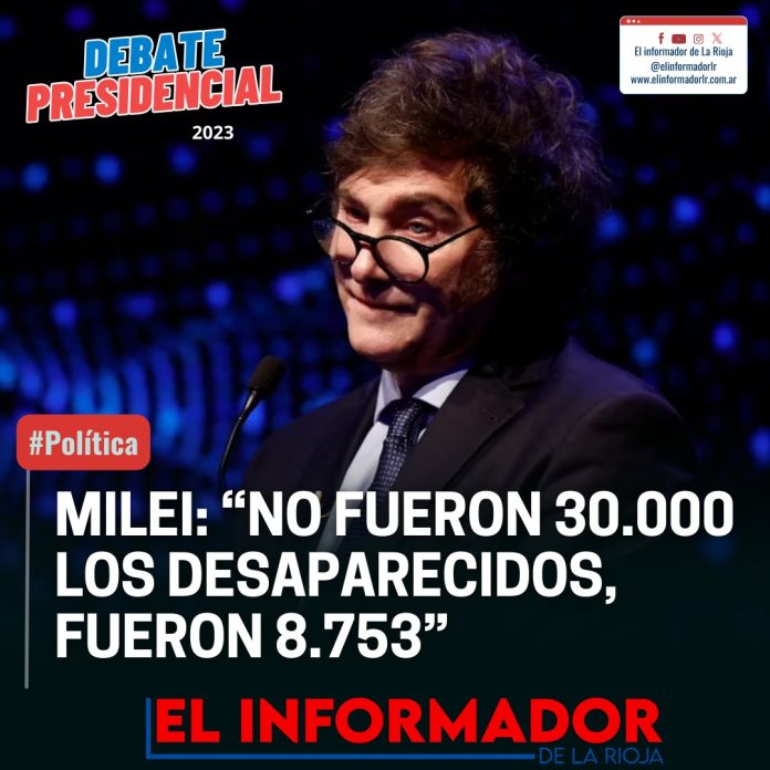 Inicio Destacadas MILEI: «NO FUERON 30.000 LOS DESAPARECIDOS, FUERON 8.753»DestacadasMILEI: «NO FUERON 30.000 LOS DESAPARECIDOS, FUERON 8.753» octubre 1, 2023FacebookTwitterPinterestVKWhatsApp Artículos relacionadosMás del autorLa pobreza cayó en el segundo semestre y cerró el 2025 en 28,2%Franco Colapinto traerá la Formula 1 a las calles de Buenos Aires con un Road Show en PalermoAfirman que Adorni compró el departamento de Caballito en U$S230 mil dólares con un préstamo de dos jubiladasDEJA UNA RESPUESTA Cancelar respuestaPor favor ingrese su comentario! Por favor ingrese su nombre aquí ¡Has introducido una dirección de correo electrónico incorrecta!Por favor ingrese su dirección de correo electrónico aquí Guardar mi nombre, correo electrónico y sitio web en este navegador la próxima vez que comente.