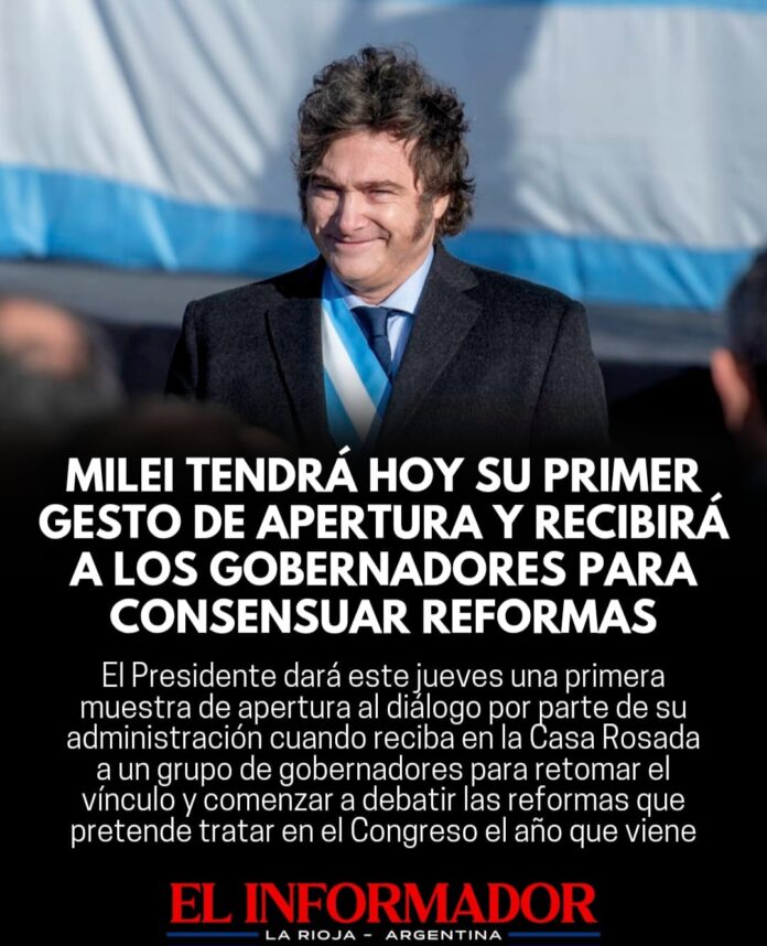 Inicio Destacadas Milei tendrá hoy su primer gesto de apertura y recibirá a los...DestacadasMilei tendrá hoy su primer gesto de apertura y recibirá a los gobernadores para consensuar reformas octubre 30, 2025FacebookTwitterPinterestVKWhatsApp Artículos relacionadosMás del autorLa carne subió un 10% en marzo y recarga el IPC, como en febreroSegún la escribana, Adorni compró el departamento de Caballito en 12 cuotas y sin interesesJavier Milei volvió a atacar a los periodistas y aseguró que «la motosierra sigue encendida»DEJA UNA RESPUESTA Cancelar respuestaPor favor ingrese su comentario! Por favor ingrese su nombre aquí ¡Has introducido una dirección de correo electrónico incorrecta!Por favor ingrese su dirección de correo electrónico aquí Guardar mi nombre, correo electrónico y sitio web en este navegador la próxima vez que comente.
