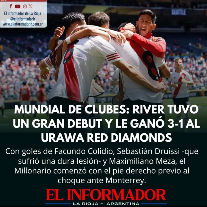 Inicio Deportes Mundial de Clubes: River tuvo un gran debut y le ganó 3-1...DeportesMundial de Clubes: River tuvo un gran debut y le ganó 3-1 al Urawa Red Diamonds junio 17, 2025FacebookTwitterPinterestVKWhatsApp Artículos relacionadosMás del autorFranco Colapinto traerá la Formula 1 a las calles de Buenos Aires con un Road Show en PalermoPresentaron competencias de trail running que impulsan el turismo y el desarrollo regionalRiver deja de participar en las reuniones de comité ejecutivo de AFADEJA UNA RESPUESTA Cancelar respuestaPor favor ingrese su comentario! Por favor ingrese su nombre aquí ¡Has introducido una dirección de correo electrónico incorrecta!Por favor ingrese su dirección de correo electrónico aquí Guardar mi nombre, correo electrónico y sitio web en este navegador la próxima vez que comente.