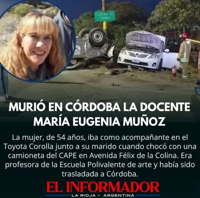 Inicio Local Murió en Córdoba la docente Maria Eugenia MuñozLocalMurió en Córdoba la docente Maria Eugenia Muñoz julio 16, 2025FacebookTwitterPinterestVKWhatsApp Artículos relacionadosMás del autorEncontraron a un hombre de 86 años que llevaba meses muerto en su domicilio en Barrio FerroviarioLa Rioja homenajeó a los veteranos de Malvinas con el tradicional desfile del 2 de abrilEl COE inicia el operativo de Semana Santa en el Señor de la PeñaDEJA UNA RESPUESTA Cancelar respuestaPor favor ingrese su comentario! Por favor ingrese su nombre aquí ¡Has introducido una dirección de correo electrónico incorrecta!Por favor ingrese su dirección de correo electrónico aquí Guardar mi nombre, correo electrónico y sitio web en este navegador la próxima vez que comente.