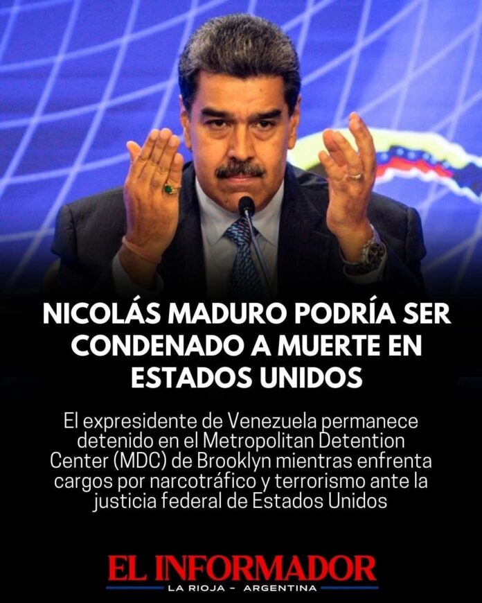 Inicio Destacadas Nicolás Maduro podría ser condenado a muerte en Estados UnidosDestacadasNicolás Maduro podría ser condenado a muerte en Estados Unidos enero 6, 2026FacebookTwitterPinterestVKWhatsApp Artículos relacionadosMás del autorLa nueva guerra en Nuevo Oriente mantiene al comercio internacional bajo un manto de incertidumbreCaputo: «El problema no es un despido, sino que nadie quiere contratar a nadie»Nahuel Gallo llegó a la Argentina y fue recibido por su esposa e hijoDEJA UNA RESPUESTA Cancelar respuestaPor favor ingrese su comentario! Por favor ingrese su nombre aquí ¡Has introducido una dirección de correo electrónico incorrecta!Por favor ingrese su dirección de correo electrónico aquí Guardar mi nombre, correo electrónico y sitio web en este navegador la próxima vez que comente.