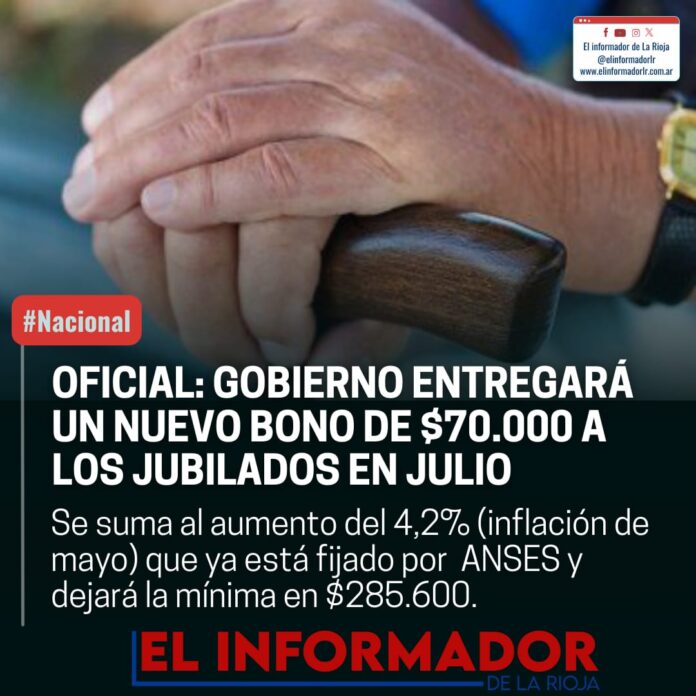 Inicio Nacional OFICIAL: GOBIERNO ENTREGARÁ UN NUEVO BONO DE 70.000 A LOS JUBILADOS EN...NacionalOFICIAL: GOBIERNO ENTREGARÁ UN NUEVO BONO DE 70.000 A LOS JUBILADOS EN JULIO julio 1, 2024FacebookTwitterPinterestVKWhatsApp Artículos relacionadosMás del autorATE anunció un paro nacional para el 21 de abril en reclamo de aumento salarialTere Madera sobre Milei: «No puede haber respeto quien gobierna con odio e intolerancia»Una multitud participó de la vigilia en honor a los Héroes de MalvinasDEJA UNA RESPUESTA Cancelar respuestaPor favor ingrese su comentario! Por favor ingrese su nombre aquí ¡Has introducido una dirección de correo electrónico incorrecta!Por favor ingrese su dirección de correo electrónico aquí Guardar mi nombre, correo electrónico y sitio web en este navegador la próxima vez que comente.