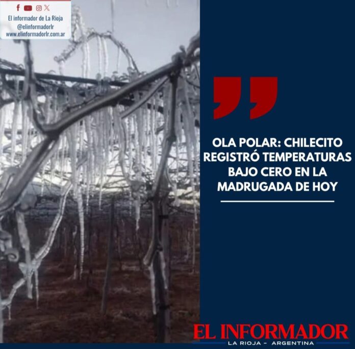 Inicio Local Ola polar: Chilecito registró temperaturas bajo cero en la madrugada de hoyLocalOla polar: Chilecito registró temperaturas bajo cero en la madrugada de hoy junio 30, 2025FacebookTwitterPinterestVKWhatsApp Artículos relacionadosMás del autorEncontraron a un hombre de 86 años que llevaba meses muerto en su domicilio en Barrio FerroviarioLa Rioja homenajeó a los veteranos de Malvinas con el tradicional desfile del 2 de abrilEl COE inicia el operativo de Semana Santa en el Señor de la PeñaDEJA UNA RESPUESTA Cancelar respuestaPor favor ingrese su comentario! Por favor ingrese su nombre aquí ¡Has introducido una dirección de correo electrónico incorrecta!Por favor ingrese su dirección de correo electrónico aquí Guardar mi nombre, correo electrónico y sitio web en este navegador la próxima vez que comente.