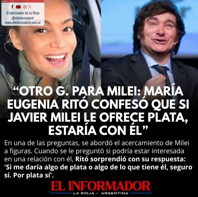 Inicio Nacional «Otro G. para Milei: Maria Eugenia Ritó confesó que si Javier Milei...Nacional«Otro G. para Milei: Maria Eugenia Ritó confesó que si Javier Milei le ofrece plata, estaría con él» junio 9, 2025FacebookTwitterPinterestVKWhatsApp Artículos relacionadosMás del autorUna multitud participó de la vigilia en honor a los Héroes de MalvinasTercera semana de paro universitario por recomposición salarialEl índice de confianza en el Gobierno cayó por cuarto mes consecutivoDEJA UNA RESPUESTA Cancelar respuestaPor favor ingrese su comentario! Por favor ingrese su nombre aquí ¡Has introducido una dirección de correo electrónico incorrecta!Por favor ingrese su dirección de correo electrónico aquí Guardar mi nombre, correo electrónico y sitio web en este navegador la próxima vez que comente.