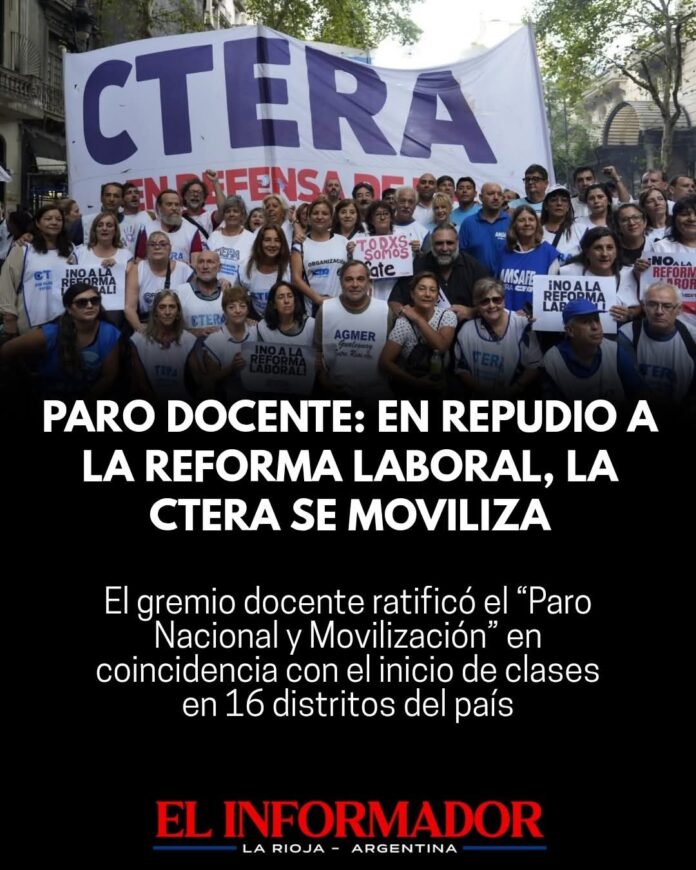 Inicio Destacadas Paro docente: En repudio a la reforma laboral, la CTERA se movilizaDestacadasParo docente: En repudio a la reforma laboral, la CTERA se moviliza marzo 2, 2026FacebookTwitterPinterestVKWhatsApp Artículos relacionadosMás del autorRecortes en el servicio Metereológico Nacional: Confirman más de 140 despidos en el sectorEl Director de PAMI negó una crisis en el organismo y aseguró que los pagos «se estan ordenando»Golpe al narcotráfico en Chilecito: 8 demorados en el operativo «guanchineros»DEJA UNA RESPUESTA Cancelar respuestaPor favor ingrese su comentario! Por favor ingrese su nombre aquí ¡Has introducido una dirección de correo electrónico incorrecta!Por favor ingrese su dirección de correo electrónico aquí Guardar mi nombre, correo electrónico y sitio web en este navegador la próxima vez que comente.