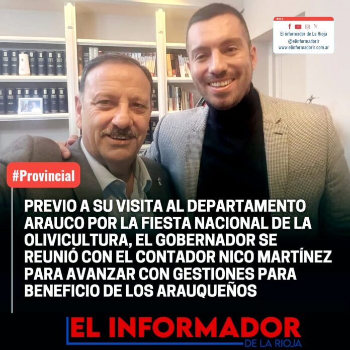 Inicio Local PREVIO A SU VISITA AL DEPARTAMENTO ARAUCO POR LA FIESTA NACIONAL DE...LocalPREVIO A SU VISITA AL DEPARTAMENTO ARAUCO POR LA FIESTA NACIONAL DE LA OLIVICULTURA, EL GOBERNADOR SE REUNIÓ CON EL CONTADOR NICO MARTÍNEZ PARA AVANZAR CON GESTIONES PARA BENEFICIOS DE LOS ARAUQUEÑOS mayo 23, 2024FacebookTwitterPinterestVKWhatsApp Artículos relacionadosMás del autorTere Madera: «No podemos permitir que emprendedores bajen los brazos, en tiempo de crisis, cada trabajo cuenta»Quintela tomó juramento a Hugo Dante Herrera como nuevo Secretario de HaciendaAdvierten sobre el brote de chikungunya en el norte del país y refuerzan recomendaciones para evitar su propagaciónDEJA UNA RESPUESTA Cancelar respuestaPor favor ingrese su comentario! Por favor ingrese su nombre aquí ¡Has introducido una dirección de correo electrónico incorrecta!Por favor ingrese su dirección de correo electrónico aquí Guardar mi nombre, correo electrónico y sitio web en este navegador la próxima vez que comente.