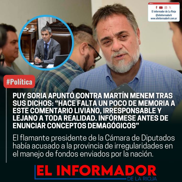 Inicio Destacadas PUY SORIA APUNTÓ CONTRA MARTÍN MENEM TRAS SUS DICHOS: «HACE FALTA UN...DestacadasPUY SORIA APUNTÓ CONTRA MARTÍN MENEM TRAS SUS DICHOS: «HACE FALTA UN POCO DE MEMORIA A ESTE COMENTARIO LIVIANO, IRRESPONSABLE Y LEJANO A TODA REALIDAD, INFÓRMESE ANTES DE ENUNCIAR CONCEPTOS DEMAGÓGICOS» enero 9, 2024FacebookTwitterPinterestVKWhatsApp Artículos relacionadosMás del autorFranco Colapinto traerá la Formula 1 a las calles de Buenos Aires con un Road Show en PalermoAfirman que Adorni compró el departamento de Caballito en U$S230 mil dólares con un préstamo de dos jubiladasHallan el cuerpo sin vida del jóven que cayó al dique de OltaDEJA UNA RESPUESTA Cancelar respuestaPor favor ingrese su comentario! Por favor ingrese su nombre aquí ¡Has introducido una dirección de correo electrónico incorrecta!Por favor ingrese su dirección de correo electrónico aquí Guardar mi nombre, correo electrónico y sitio web en este navegador la próxima vez que comente.