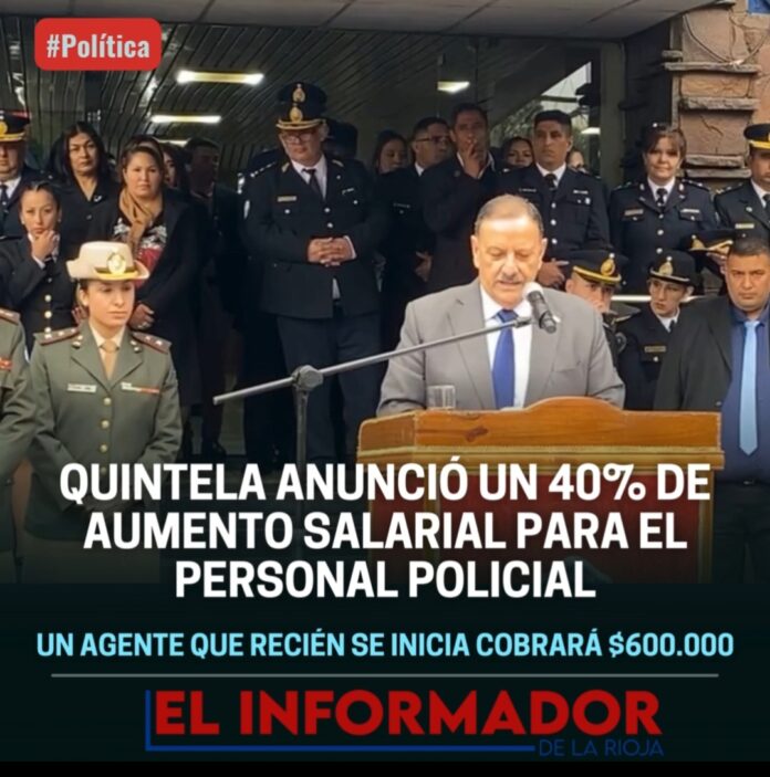 Inicio Destacadas QUINTELA ANUNCIÓ UN 40% DE AUMENTO SALARIAL PARA EL PERSONAL POLICIALDestacadasQUINTELA ANUNCIÓ UN 40% DE AUMENTO SALARIAL PARA EL PERSONAL POLICIAL mayo 22, 2024FacebookTwitterPinterestVKWhatsApp Artículos relacionadosMás del autorLa carne subió un 10% en marzo y recarga el IPC, como en febreroSegún la escribana, Adorni compró el departamento de Caballito en 12 cuotas y sin interesesJavier Milei volvió a atacar a los periodistas y aseguró que «la motosierra sigue encendida»DEJA UNA RESPUESTA Cancelar respuestaPor favor ingrese su comentario! Por favor ingrese su nombre aquí ¡Has introducido una dirección de correo electrónico incorrecta!Por favor ingrese su dirección de correo electrónico aquí Guardar mi nombre, correo electrónico y sitio web en este navegador la próxima vez que comente.