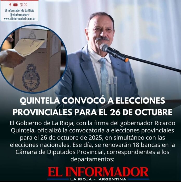 Inicio Destacadas Quintela convocó a elecciones provinciales para el 26 de OctubreDestacadasQuintela convocó a elecciones provinciales para el 26 de Octubre julio 26, 2025FacebookTwitterPinterestVKWhatsApp Artículos relacionadosMás del autorDetuvieron al hijastro del hombre de 88 años que fue encontrado sin vida en su casaYPF estabiliza el precio de la nafta por 45 días: No trasladará la suba del petróleoLa pobreza cayó en el segundo semestre y cerró el 2025 en 28,2%DEJA UNA RESPUESTA Cancelar respuestaPor favor ingrese su comentario! Por favor ingrese su nombre aquí ¡Has introducido una dirección de correo electrónico incorrecta!Por favor ingrese su dirección de correo electrónico aquí Guardar mi nombre, correo electrónico y sitio web en este navegador la próxima vez que comente.