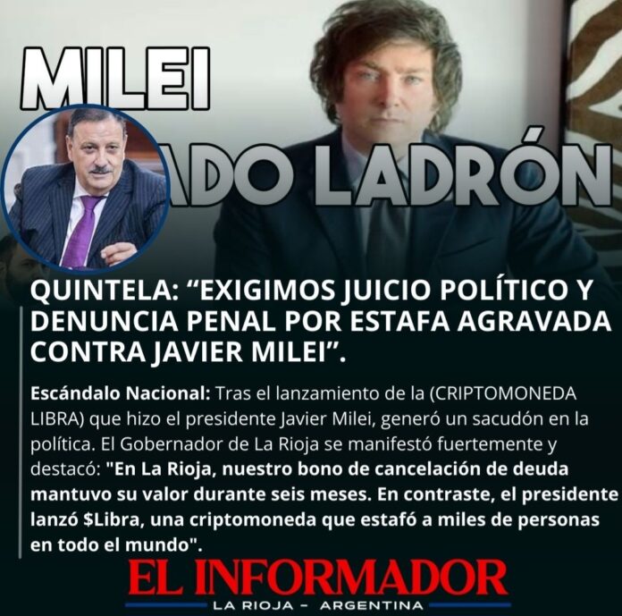 Inicio Destacadas Quintela: «exigimos juicio político y denuncia penal por estafa agravada contra Javier...DestacadasQuintela: «exigimos juicio político y denuncia penal por estafa agravada contra Javier Milei» febrero 15, 2025FacebookTwitterPinterestVKWhatsApp Artículos relacionadosMás del autorAdorni dijo que no tiene «nada que esconder» y que su patrimonio lo construyó antes de llegar al GobiernoFuerte aumento de la nafta en La Rioja: La super ya cuesta más de 2.000 el litroEncuesta mostró que el 53,7% de los argentinos tienen una imagen negativa de Milei y el 73% pide la renuncia de AdorniDEJA UNA RESPUESTA Cancelar respuestaPor favor ingrese su comentario! Por favor ingrese su nombre aquí ¡Has introducido una dirección de correo electrónico incorrecta!Por favor ingrese su dirección de correo electrónico aquí Guardar mi nombre, correo electrónico y sitio web en este navegador la próxima vez que comente.