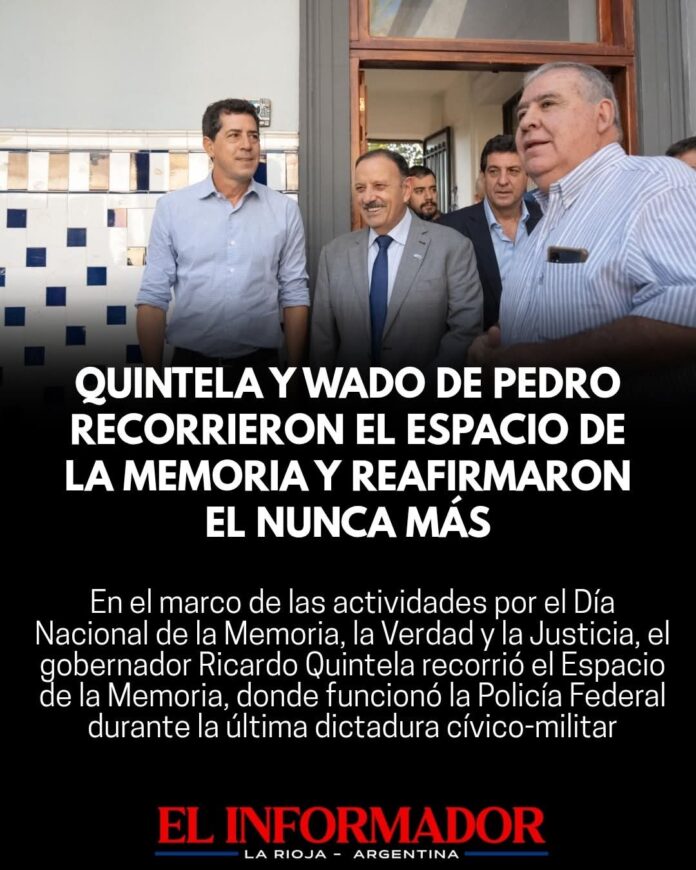 Inicio Política Quintela y Wado de Pedro recorrieron el espacio de la memoria y...PolíticaQuintela y Wado de Pedro recorrieron el espacio de la memoria y reafirmaron el NUNCA MÁS marzo 20, 2026FacebookTwitterPinterestVKWhatsApp Artículos relacionadosMás del autorEl PRO se relanzó de cara a las elecciones 2027: «Somos el próximo paso»El Gobierno Nacional absorve riquezas de las provincias pero los fondos adeudados no lleganEl Gobierno busca acelerar la reforma electoral y negocia cambios en las PASODEJA UNA RESPUESTA Cancelar respuestaPor favor ingrese su comentario! Por favor ingrese su nombre aquí ¡Has introducido una dirección de correo electrónico incorrecta!Por favor ingrese su dirección de correo electrónico aquí Guardar mi nombre, correo electrónico y sitio web en este navegador la próxima vez que comente.