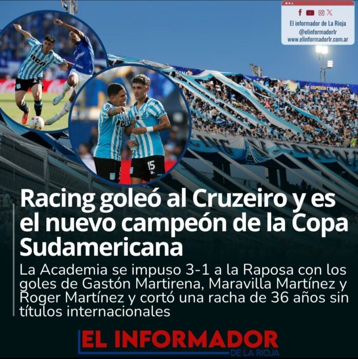 Inicio Deportes Racing goleó al Cruzeiro y es el nuevo campeón de la Copa...DeportesRacing goleó al Cruzeiro y es el nuevo campeón de la Copa Sudamericana noviembre 24, 2024FacebookTwitterPinterestVKWhatsApp Artículos relacionadosMás del autorFranco Colapinto traerá la Formula 1 a las calles de Buenos Aires con un Road Show en PalermoPresentaron competencias de trail running que impulsan el turismo y el desarrollo regionalRiver deja de participar en las reuniones de comité ejecutivo de AFADEJA UNA RESPUESTA Cancelar respuestaPor favor ingrese su comentario! Por favor ingrese su nombre aquí ¡Has introducido una dirección de correo electrónico incorrecta!Por favor ingrese su dirección de correo electrónico aquí Guardar mi nombre, correo electrónico y sitio web en este navegador la próxima vez que comente.