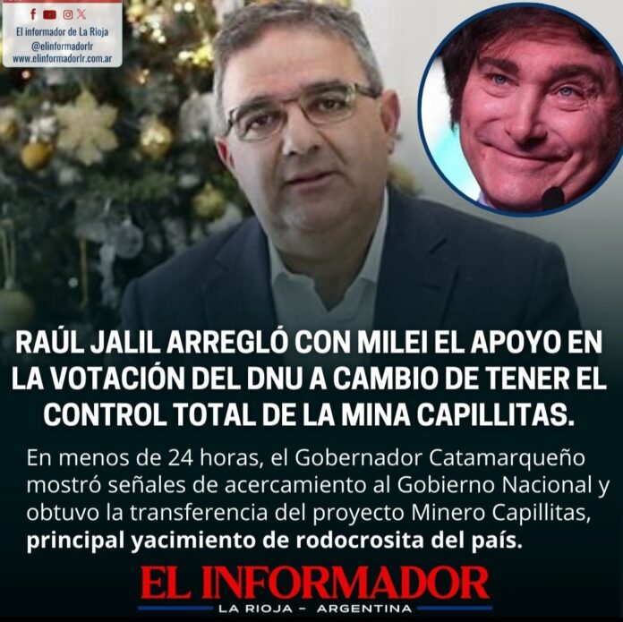 Inicio Destacadas Raúl Jalil arregló con Milei el apoyo en la votación del DNU...DestacadasRaúl Jalil arregló con Milei el apoyo en la votación del DNU a cambio de tener el control total de la mina Capillitas marzo 20, 2025FacebookTwitterPinterestVKWhatsApp Artículos relacionadosMás del autorLa Justicia ordenó allanamientos y amplía la investigación por los vuelos de AdorniLa imágen más triste: Una jubilada comiendo de la basuraSergio Uñac quiere rearmar el peronismo de cara al 2027: «Es tiempo de tomar decisiones»DEJA UNA RESPUESTA Cancelar respuestaPor favor ingrese su comentario! Por favor ingrese su nombre aquí ¡Has introducido una dirección de correo electrónico incorrecta!Por favor ingrese su dirección de correo electrónico aquí Guardar mi nombre, correo electrónico y sitio web en este navegador la próxima vez que comente.