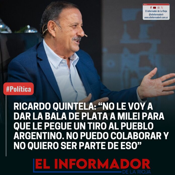 Inicio Destacadas RICARDO QUINTELA: «NO LE VOY A DAR LA BALA DE PLATA A...DestacadasRICARDO QUINTELA: «NO LE VOY A DAR LA BALA DE PLATA A MILEI PARA QUE LE PEGUE UN TIRO AL PUEBLO ARGENTINO. NO PUEDO COLABORAR Y NO QUIERO SER PARTE DE ESTO» mayo 13, 2024FacebookTwitterPinterestVKWhatsApp Artículos relacionadosMás del autorLa Rioja solicitó $85.000 millones de adelanto de Coparticipación a la NaciónEl Gobierno Nacional otorgará un anticipo financiero de hasta de $400.000 millones a La RiojaDetuvieron al hijastro del hombre de 88 años que fue encontrado sin vida en su casaDEJA UNA RESPUESTA Cancelar respuestaPor favor ingrese su comentario! Por favor ingrese su nombre aquí ¡Has introducido una dirección de correo electrónico incorrecta!Por favor ingrese su dirección de correo electrónico aquí Guardar mi nombre, correo electrónico y sitio web en este navegador la próxima vez que comente.