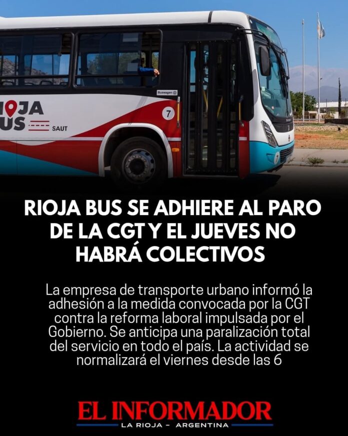 Inicio Local Rioja Bus se adhiere al paro de la CGT y el jueves...LocalTransporteRioja Bus se adhiere al paro de la CGT y el jueves no habrá colectivos febrero 18, 2026FacebookTwitterPinterestVKWhatsApp Artículos relacionadosMás del autorEncontraron a un hombre de 86 años que llevaba meses muerto en su domicilio en Barrio FerroviarioLa Rioja homenajeó a los veteranos de Malvinas con el tradicional desfile del 2 de abrilEl COE inicia el operativo de Semana Santa en el Señor de la PeñaDEJA UNA RESPUESTA Cancelar respuestaPor favor ingrese su comentario! Por favor ingrese su nombre aquí ¡Has introducido una dirección de correo electrónico incorrecta!Por favor ingrese su dirección de correo electrónico aquí Guardar mi nombre, correo electrónico y sitio web en este navegador la próxima vez que comente.