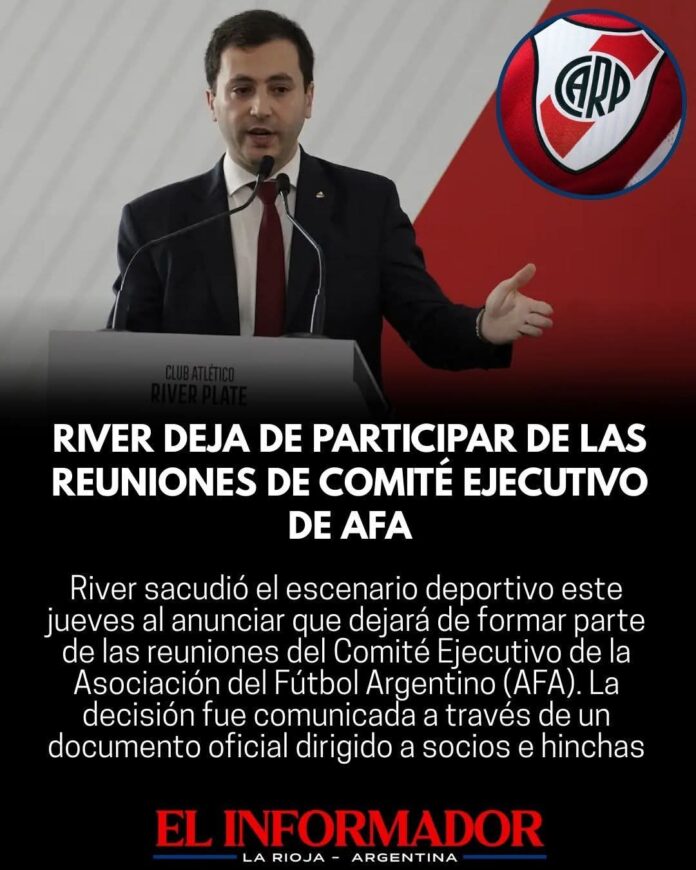 Inicio Deportes River deja de participar en las reuniones de comité ejecutivo de AFADeportesRiver deja de participar en las reuniones de comité ejecutivo de AFA marzo 5, 2026FacebookTwitterPinterestVKWhatsApp Artículos relacionadosMás del autorGobierno articula con la Liga Riojana de fútbol un plan de apoyo para clubes y torneosFranco Colapinto: «Estoy emocionado por apretarle al auto y ver en que punto estamos»Aseguran que Marcelo Gallardo analiza su renuncia tras la derrota ante VélezDEJA UNA RESPUESTA Cancelar respuestaPor favor ingrese su comentario! Por favor ingrese su nombre aquí ¡Has introducido una dirección de correo electrónico incorrecta!Por favor ingrese su dirección de correo electrónico aquí Guardar mi nombre, correo electrónico y sitio web en este navegador la próxima vez que comente.