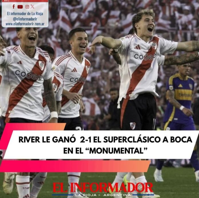 Inicio Deportes River le ganó 2-1 el super clásico a Boca en el «Monumental»DeportesRiver le ganó 2-1 el super clásico a Boca en el «Monumental» abril 27, 2025FacebookTwitterPinterestVKWhatsApp Artículos relacionadosMás del autorRiver deja de participar en las reuniones de comité ejecutivo de AFAGobierno articula con la Liga Riojana de fútbol un plan de apoyo para clubes y torneosFranco Colapinto: «Estoy emocionado por apretarle al auto y ver en que punto estamos»DEJA UNA RESPUESTA Cancelar respuestaPor favor ingrese su comentario! Por favor ingrese su nombre aquí ¡Has introducido una dirección de correo electrónico incorrecta!Por favor ingrese su dirección de correo electrónico aquí Guardar mi nombre, correo electrónico y sitio web en este navegador la próxima vez que comente.