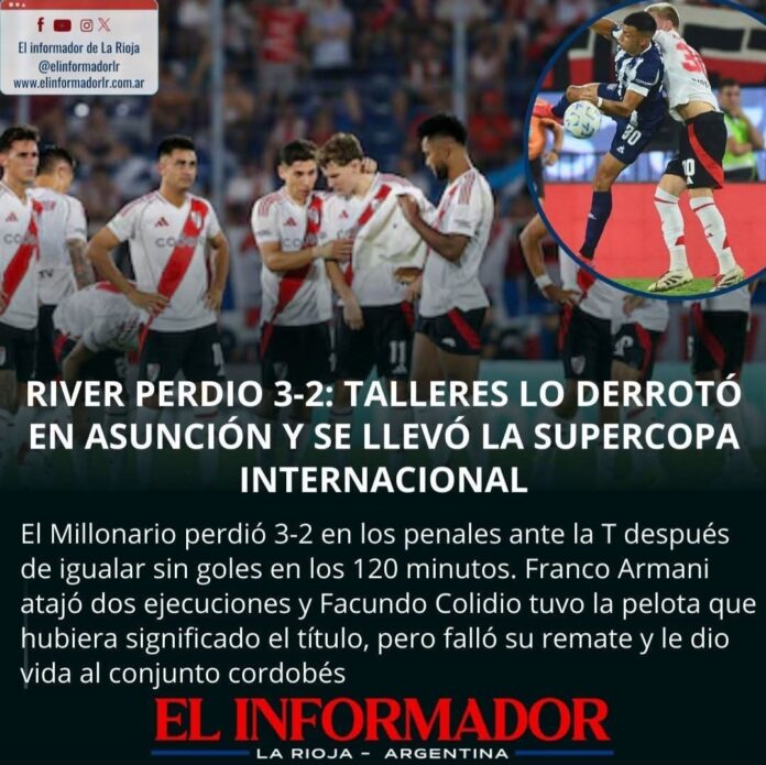 Inicio Deportes River perdió 3-2: Talleres lo derrotó en Asunción y se llevó la...DeportesRiver perdió 3-2: Talleres lo derrotó en Asunción y se llevó la Supercopa Internacional marzo 6, 2025FacebookTwitterPinterestVKWhatsApp Artículos relacionadosMás del autorFranco Colapinto traerá la Formula 1 a las calles de Buenos Aires con un Road Show en PalermoPresentaron competencias de trail running que impulsan el turismo y el desarrollo regionalRiver deja de participar en las reuniones de comité ejecutivo de AFADEJA UNA RESPUESTA Cancelar respuestaPor favor ingrese su comentario! Por favor ingrese su nombre aquí ¡Has introducido una dirección de correo electrónico incorrecta!Por favor ingrese su dirección de correo electrónico aquí Guardar mi nombre, correo electrónico y sitio web en este navegador la próxima vez que comente.