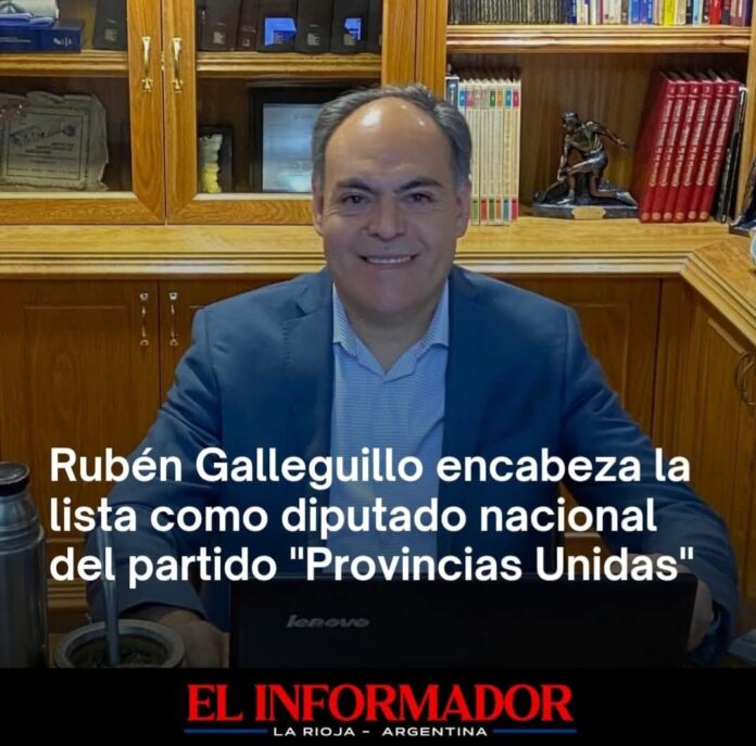 Inicio Política Rubén Galleguillo encabeza la lista como diputado nacional del partido «provincias unidas»PolíticaRubén Galleguillo encabeza la lista como diputado nacional del partido «provincias unidas» agosto 18, 2025FacebookTwitterPinterestVKWhatsApp Artículos relacionadosMás del autorEl funcionario echado por Sandra Pettovello tras tomar un crédito hipotecario defendió su gestión: «Lamento el desenlace»Ricardo Quintela: «Argentina se construye con unidad y con un proyecto que defienda la nuestro»Intendentes denuncian «asfixia financiera» y reclaman mayor distribución de recursosDEJA UNA RESPUESTA Cancelar respuestaPor favor ingrese su comentario! Por favor ingrese su nombre aquí ¡Has introducido una dirección de correo electrónico incorrecta!Por favor ingrese su dirección de correo electrónico aquí Guardar mi nombre, correo electrónico y sitio web en este navegador la próxima vez que comente.