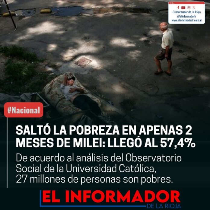 Inicio Nacional SALTÓ LA POBREZA EN APENAS 2 MESES DE MILEI: LLEGÓ AL 57,4%NacionalSALTÓ LA POBREZA EN APENAS 2 MESES DE MILEI: LLEGÓ AL 57,4% febrero 19, 2024FacebookTwitterPinterestVKWhatsApp Artículos relacionadosMás del autorATE anunció un paro nacional para el 21 de abril en reclamo de aumento salarialTere Madera sobre Milei: «No puede haber respeto quien gobierna con odio e intolerancia»Una multitud participó de la vigilia en honor a los Héroes de MalvinasDEJA UNA RESPUESTA Cancelar respuestaPor favor ingrese su comentario! Por favor ingrese su nombre aquí ¡Has introducido una dirección de correo electrónico incorrecta!Por favor ingrese su dirección de correo electrónico aquí Guardar mi nombre, correo electrónico y sitio web en este navegador la próxima vez que comente.