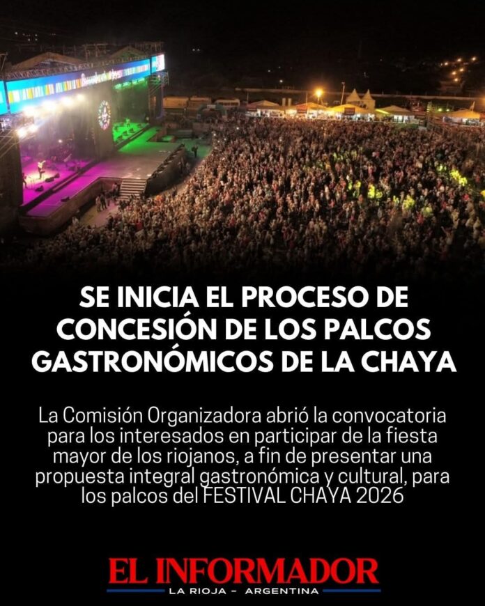 Inicio Local Se inicia el proceso de concesión de los palcos gastronómicos de la...LocalSe inicia el proceso de concesión de los palcos gastronómicos de la Chaya diciembre 23, 2025FacebookTwitterPinterestVKWhatsApp Artículos relacionadosMás del autorLa Rioja puso en funcionamiento tres nuevos Juzgados de FamiliaSe pondrá en marcha en La Rioja la diplomatura que permitirá formarse en Gestión Cultural ComunitariaArmando Molina participará del Encuentro del Concejo Federal de Intendentes de capitalesDEJA UNA RESPUESTA Cancelar respuestaPor favor ingrese su comentario! Por favor ingrese su nombre aquí ¡Has introducido una dirección de correo electrónico incorrecta!Por favor ingrese su dirección de correo electrónico aquí Guardar mi nombre, correo electrónico y sitio web en este navegador la próxima vez que comente.