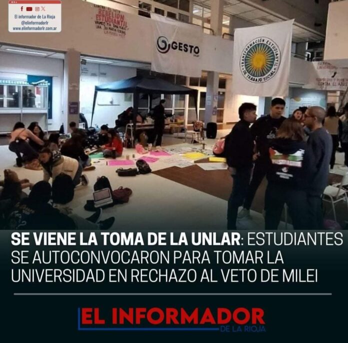 Inicio Local Se viene la toma de la UNLaR estudiantes se autoconvocaron para tomar...LocalSe viene la toma de la UNLaR estudiantes se autoconvocaron para tomar la Universidad en rechazo al veto de Milei octubre 10, 2024FacebookTwitterPinterestVKWhatsApp Artículos relacionadosMás del autorLa Rioja puso en funcionamiento tres nuevos Juzgados de FamiliaSe pondrá en marcha en La Rioja la diplomatura que permitirá formarse en Gestión Cultural ComunitariaArmando Molina participará del Encuentro del Concejo Federal de Intendentes de capitalesDEJA UNA RESPUESTA Cancelar respuestaPor favor ingrese su comentario! Por favor ingrese su nombre aquí ¡Has introducido una dirección de correo electrónico incorrecta!Por favor ingrese su dirección de correo electrónico aquí Guardar mi nombre, correo electrónico y sitio web en este navegador la próxima vez que comente.