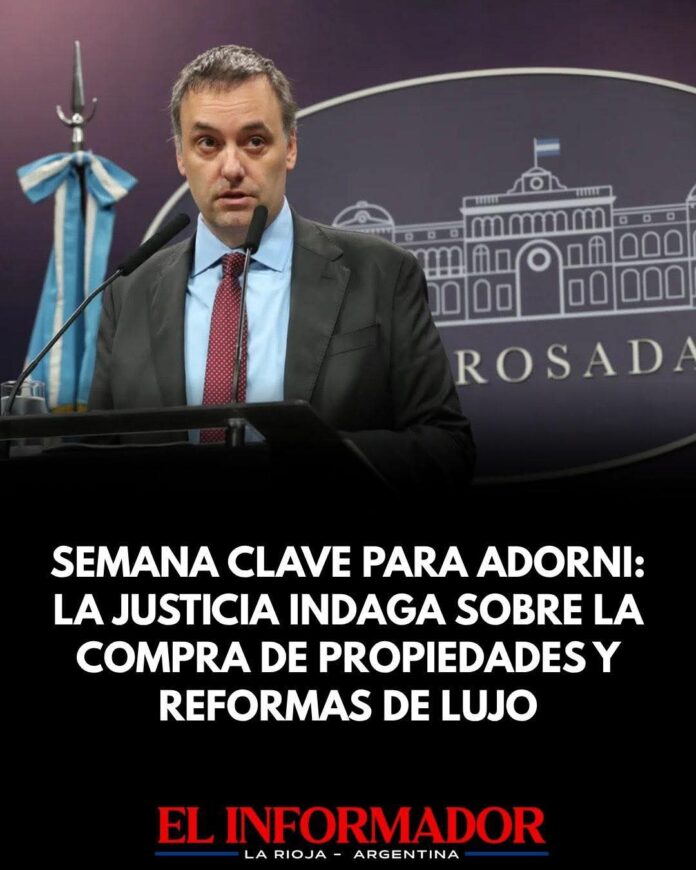 Inicio Destacadas Semana clave para adorni: La Justicia indaga sobre la compra de propiedades...DestacadasSemana clave para adorni: La Justicia indaga sobre la compra de propiedades y reformas de lujo abril 20, 2026FacebookTwitterPinterestVKWhatsApp Artículos relacionadosMás del autorLa Senadora Florencia López conforma el jurado de enjuiciamiento de Magistrados de la NaciónCanasta de crianza: Según el INDEC, en marzo criar un hijo superó los $500.000Otro viaje millonario de Adorni: Afirman que gastó miles de dólares en un lujoso hotel de BarilocheDEJA UNA RESPUESTA Cancelar respuestaPor favor ingrese su comentario! Por favor ingrese su nombre aquí ¡Has introducido una dirección de correo electrónico incorrecta!Por favor ingrese su dirección de correo electrónico aquí Guardar mi nombre, correo electrónico y sitio web en este navegador la próxima vez que comente.