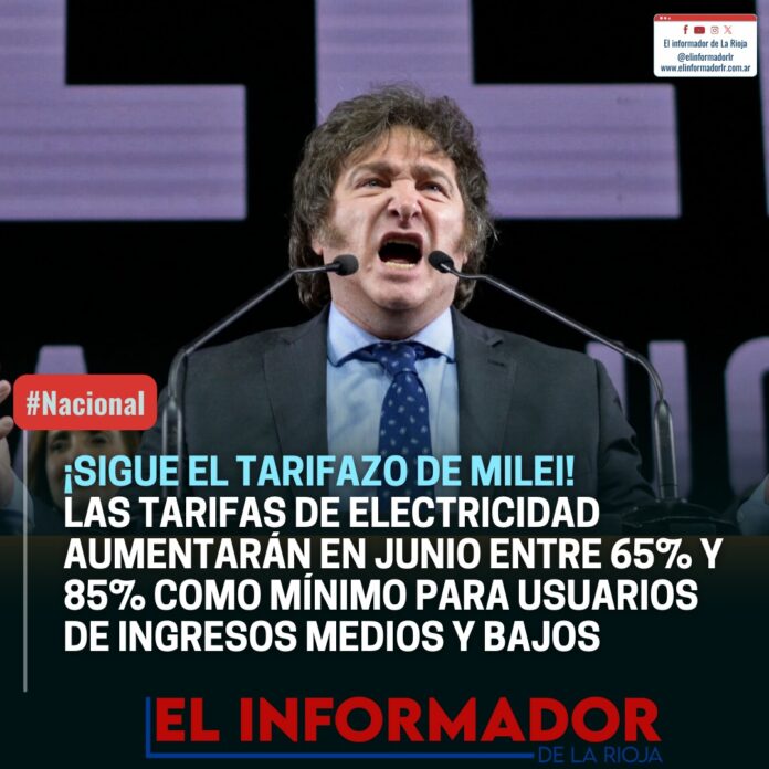 Inicio Destacadas ¡SIGUE EL TARIFAZO DE MILEI! LAS TARIFAS DE ELECTRICIDAD AUMENTARÁN ENTRE UN...Destacadas¡SIGUE EL TARIFAZO DE MILEI! LAS TARIFAS DE ELECTRICIDAD AUMENTARÁN ENTRE UN 65% Y UN 85% COMO MÍNIMO PARA USUARIOS DE INGRESOS MEDIOS Y BAJOS junio 5, 2024FacebookTwitterPinterestVKWhatsApp Artículos relacionadosMás del autorLa carne subió un 10% en marzo y recarga el IPC, como en febreroSegún la escribana, Adorni compró el departamento de Caballito en 12 cuotas y sin interesesJavier Milei volvió a atacar a los periodistas y aseguró que «la motosierra sigue encendida»DEJA UNA RESPUESTA Cancelar respuestaPor favor ingrese su comentario! Por favor ingrese su nombre aquí ¡Has introducido una dirección de correo electrónico incorrecta!Por favor ingrese su dirección de correo electrónico aquí Guardar mi nombre, correo electrónico y sitio web en este navegador la próxima vez que comente.