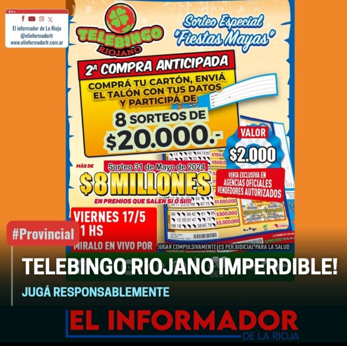 Inicio Local TELEBINGO RIOJANO IMPERDIBLELocalTELEBINGO RIOJANO IMPERDIBLE mayo 15, 2024FacebookTwitterPinterestVKWhatsApp Artículos relacionadosMás del autorEncontraron a un hombre de 86 años que llevaba meses muerto en su domicilio en Barrio FerroviarioLa Rioja homenajeó a los veteranos de Malvinas con el tradicional desfile del 2 de abrilEl COE inicia el operativo de Semana Santa en el Señor de la PeñaDEJA UNA RESPUESTA Cancelar respuestaPor favor ingrese su comentario! Por favor ingrese su nombre aquí ¡Has introducido una dirección de correo electrónico incorrecta!Por favor ingrese su dirección de correo electrónico aquí Guardar mi nombre, correo electrónico y sitio web en este navegador la próxima vez que comente.