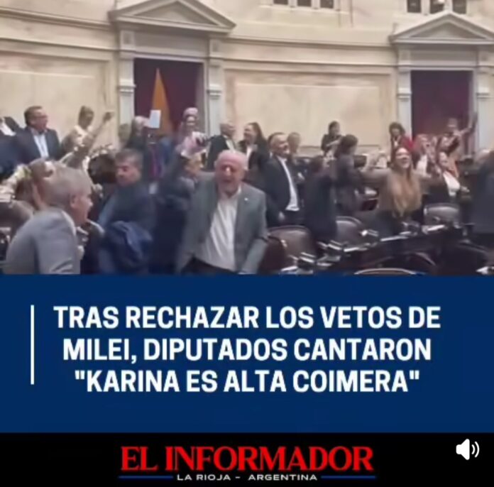 Inicio Política Tras rechazar los vetos de Milei, diputados cantaron «Karina alta coimera»PolíticaTras rechazar los vetos de Milei, diputados cantaron «Karina alta coimera» septiembre 18, 2025FacebookTwitterPinterestVKWhatsApp Artículos relacionadosMás del autorSegún la escribana, Adorni compró el departamento de Caballito en 12 cuotas y sin interesesJavier Milei volvió a atacar a los periodistas y aseguró que «la motosierra sigue encendida»Ley de Glaciares: La Libertad Avanza y aliados convirtieron en Ley la reforma de forma contundenteDEJA UNA RESPUESTA Cancelar respuestaPor favor ingrese su comentario! Por favor ingrese su nombre aquí ¡Has introducido una dirección de correo electrónico incorrecta!Por favor ingrese su dirección de correo electrónico aquí Guardar mi nombre, correo electrónico y sitio web en este navegador la próxima vez que comente.