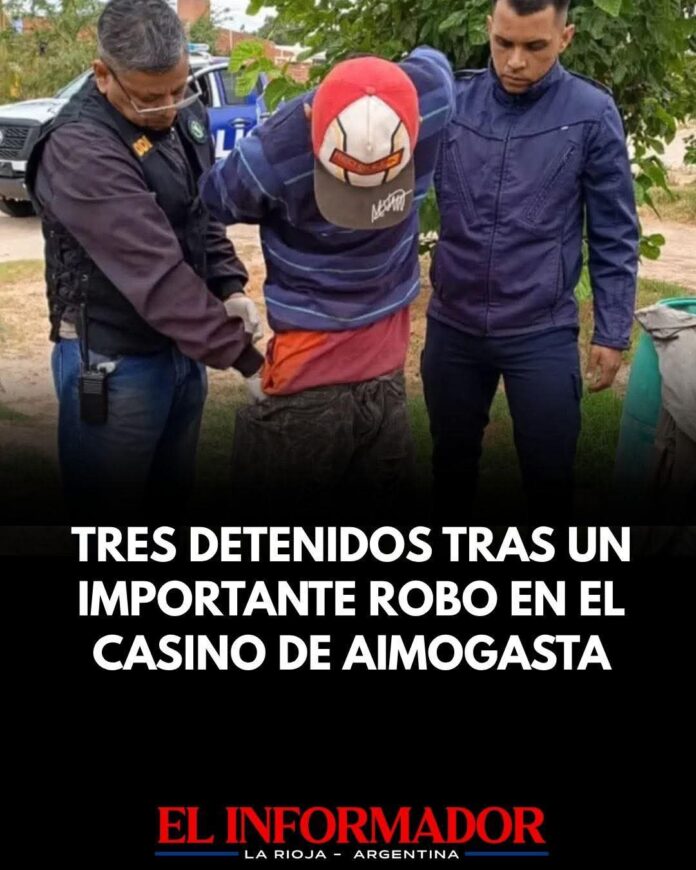 Inicio Local Tres detenidos tras un importante robo en el Casino de AimogastaLocalPolicialesTres detenidos tras un importante robo en el Casino de Aimogasta abril 7, 2026FacebookTwitterPinterestVKWhatsApp Artículos relacionadosMás del autorAvanza una nueva perforación en Vichigasta para mejorar la presión y el abastecimiento de aguaLa provincia consolida su perfil turístico con eje en la identidad local y el crecimiento del sector privadoCaso Bellora: La autopsia determinó que murió por causas naturalesDEJA UNA RESPUESTA Cancelar respuestaPor favor ingrese su comentario! Por favor ingrese su nombre aquí ¡Has introducido una dirección de correo electrónico incorrecta!Por favor ingrese su dirección de correo electrónico aquí Guardar mi nombre, correo electrónico y sitio web en este navegador la próxima vez que comente.