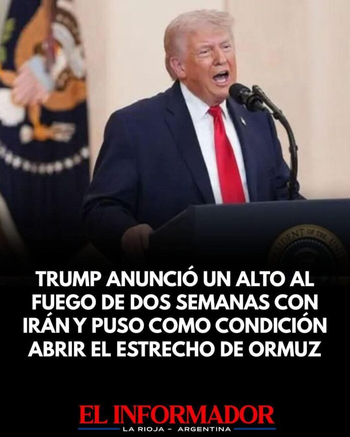 Inicio Destacadas Trump anunció un alto al fuego por dos semanas con Irán y...DestacadasInternacionalesTrump anunció un alto al fuego por dos semanas con Irán y puso como condición abrir el Estrecho de Ormuz abril 8, 2026FacebookTwitterPinterestVKWhatsApp Artículos relacionadosMás del autorLa carne subió un 10% en marzo y recarga el IPC, como en febreroIsrael elimina durante un ataque a un alto mando de Hezbolá en BeirutSegún la escribana, Adorni compró el departamento de Caballito en 12 cuotas y sin interesesDEJA UNA RESPUESTA Cancelar respuestaPor favor ingrese su comentario! Por favor ingrese su nombre aquí ¡Has introducido una dirección de correo electrónico incorrecta!Por favor ingrese su dirección de correo electrónico aquí Guardar mi nombre, correo electrónico y sitio web en este navegador la próxima vez que comente.